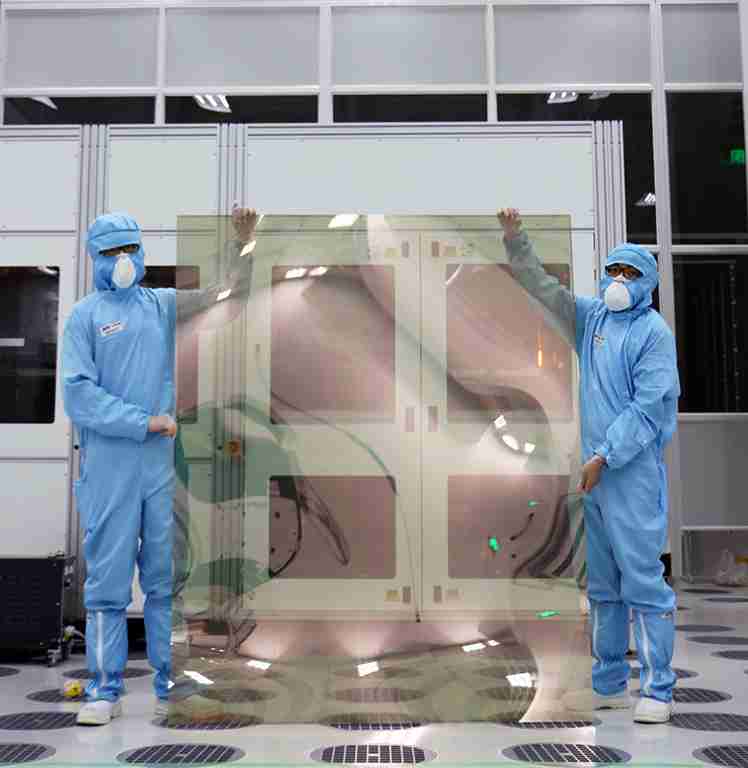 糖果派对昆山厂第六代 LTPS (低温多晶硅) 生产的玻璃基板尺寸为 1500x1850 mm (毫米)