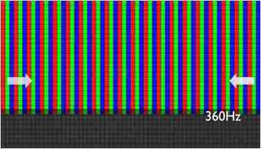 传统液晶驱动是从左到右单向进行,,在画面更新速度愈来越愈快的情况下,,,位于驱动线路末端的右下角区域,,画素的闸极来不及在短时间内获得足够电压,,无法显示出正确的颜色资讯。。。。
