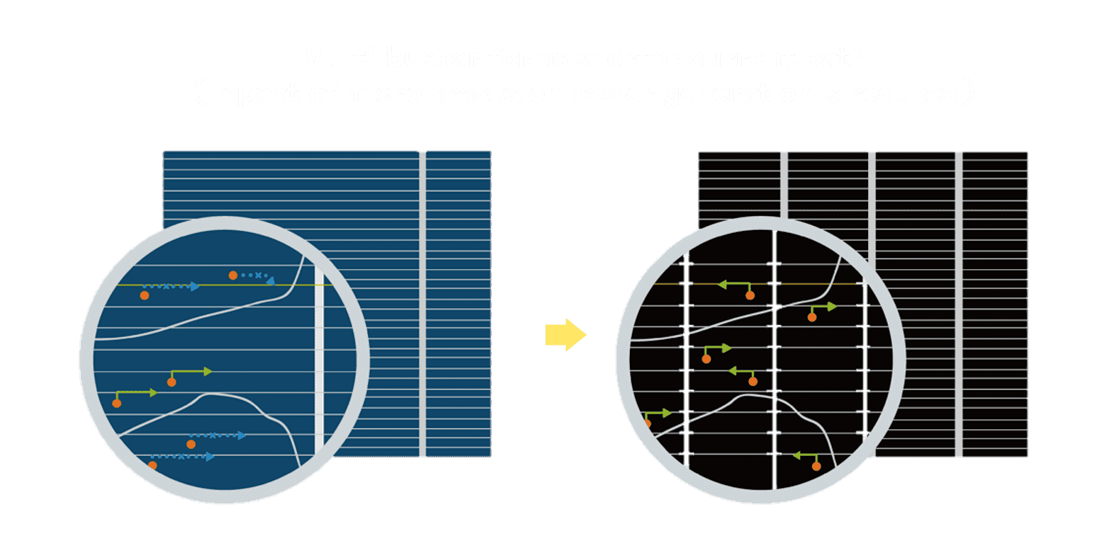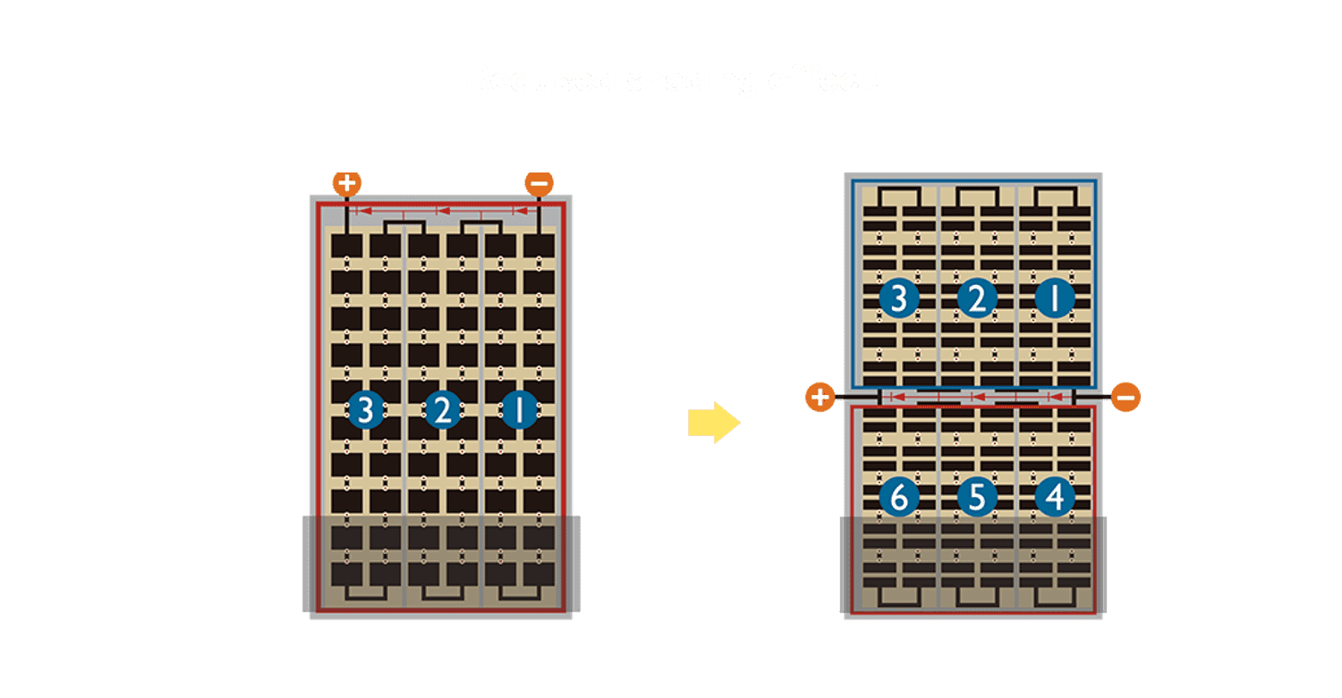 优化的太阳能电池结构设计,,,不仅提高电流收集效率,,,,降低电池隐裂,,,使太阳能模组长期维持稳定的输出效能,,,,提高营运效益。。
