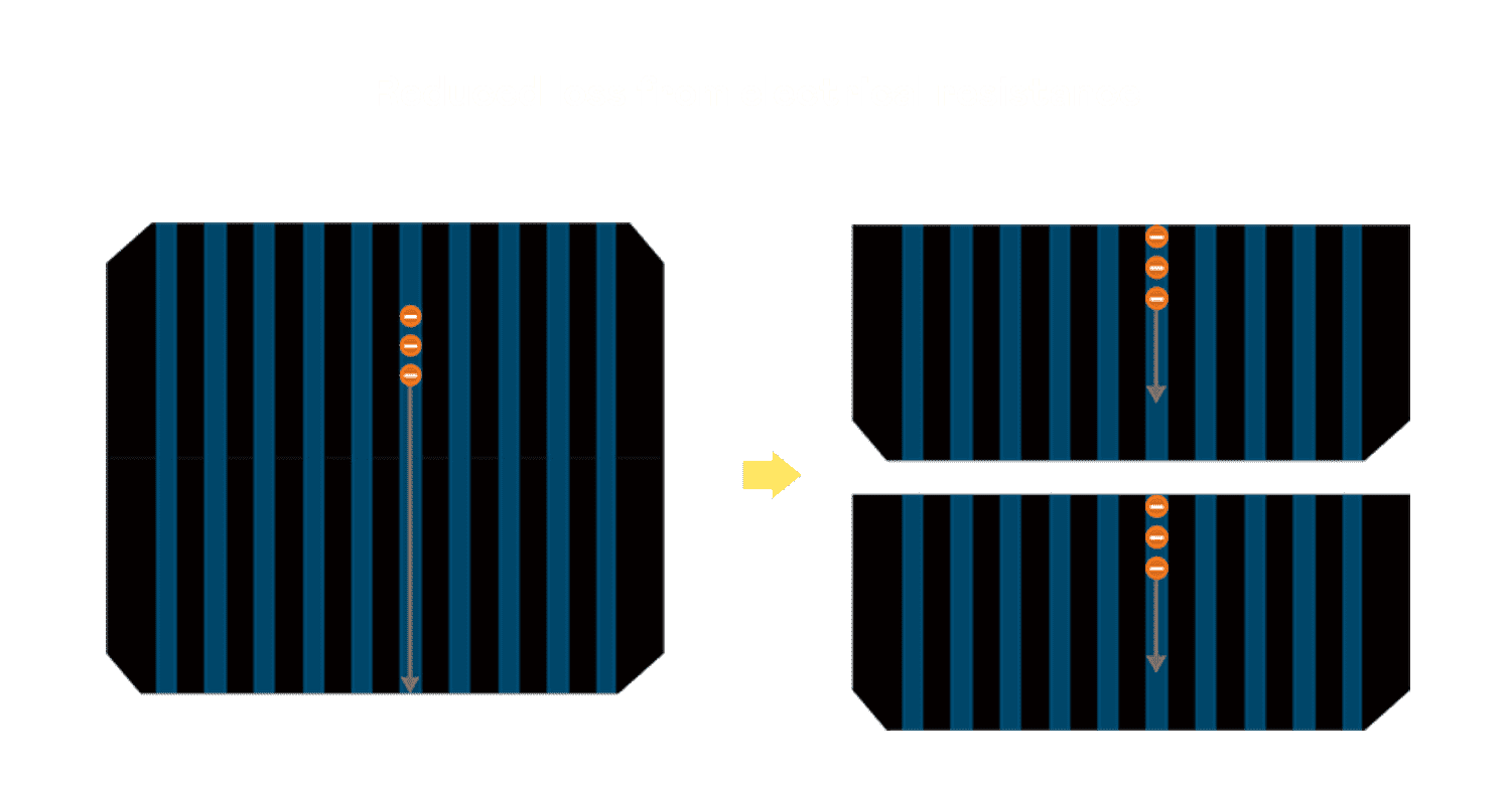 • 多条电极栅结构,,,,可有效降低外力对于电池的影响,,限制电池隐裂 (Micro-cracks) 范围,,,防止电流传输路径 (Current distribution) 之损坏进一步扩大。。